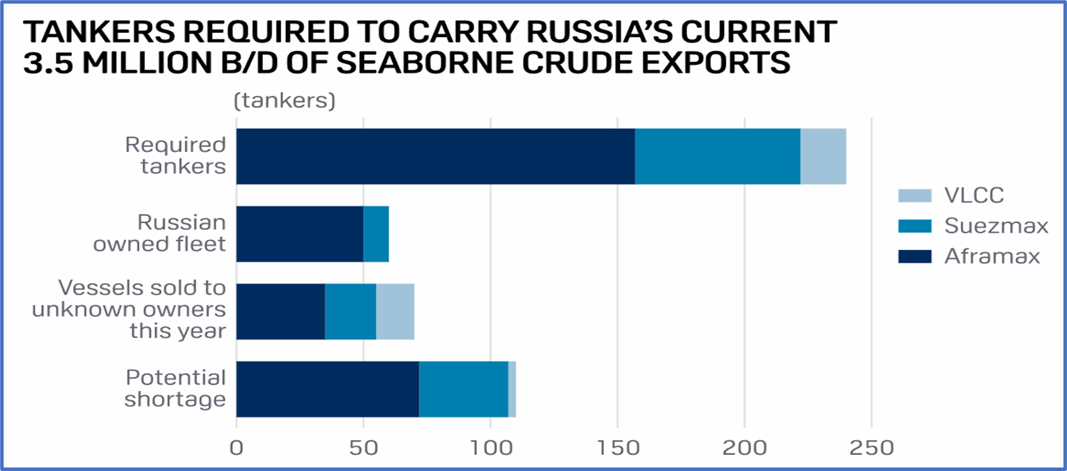 Diagram: Tankers required to carry Russia’s current 3,5 mB/D of seaborne crude exports.