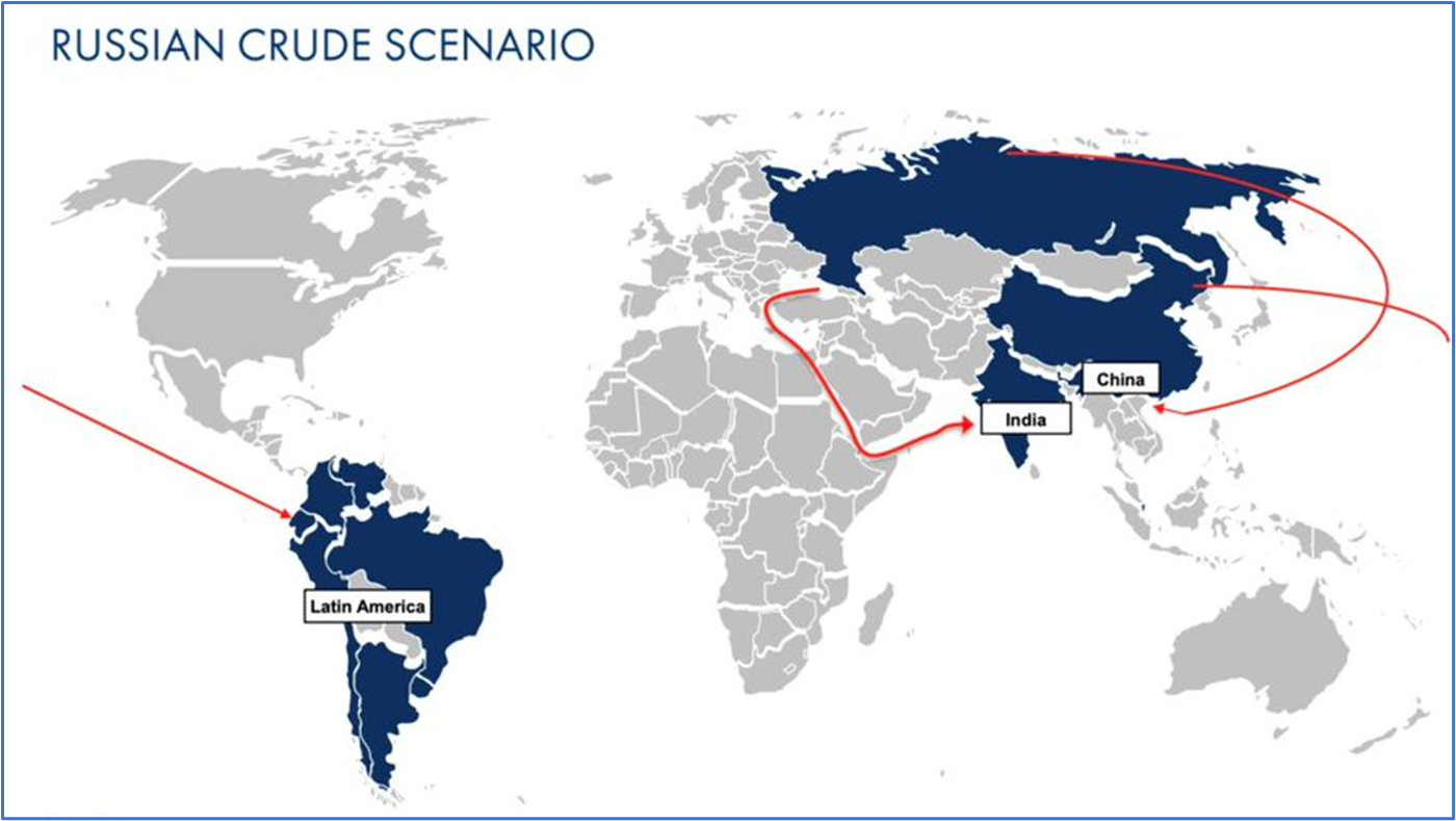 - The Russians can support to transport crude oil to Latin America, India, and China with their own tanker fleet and shadow fleet, as shown on the map, regardless of the EU's ceiling price application.