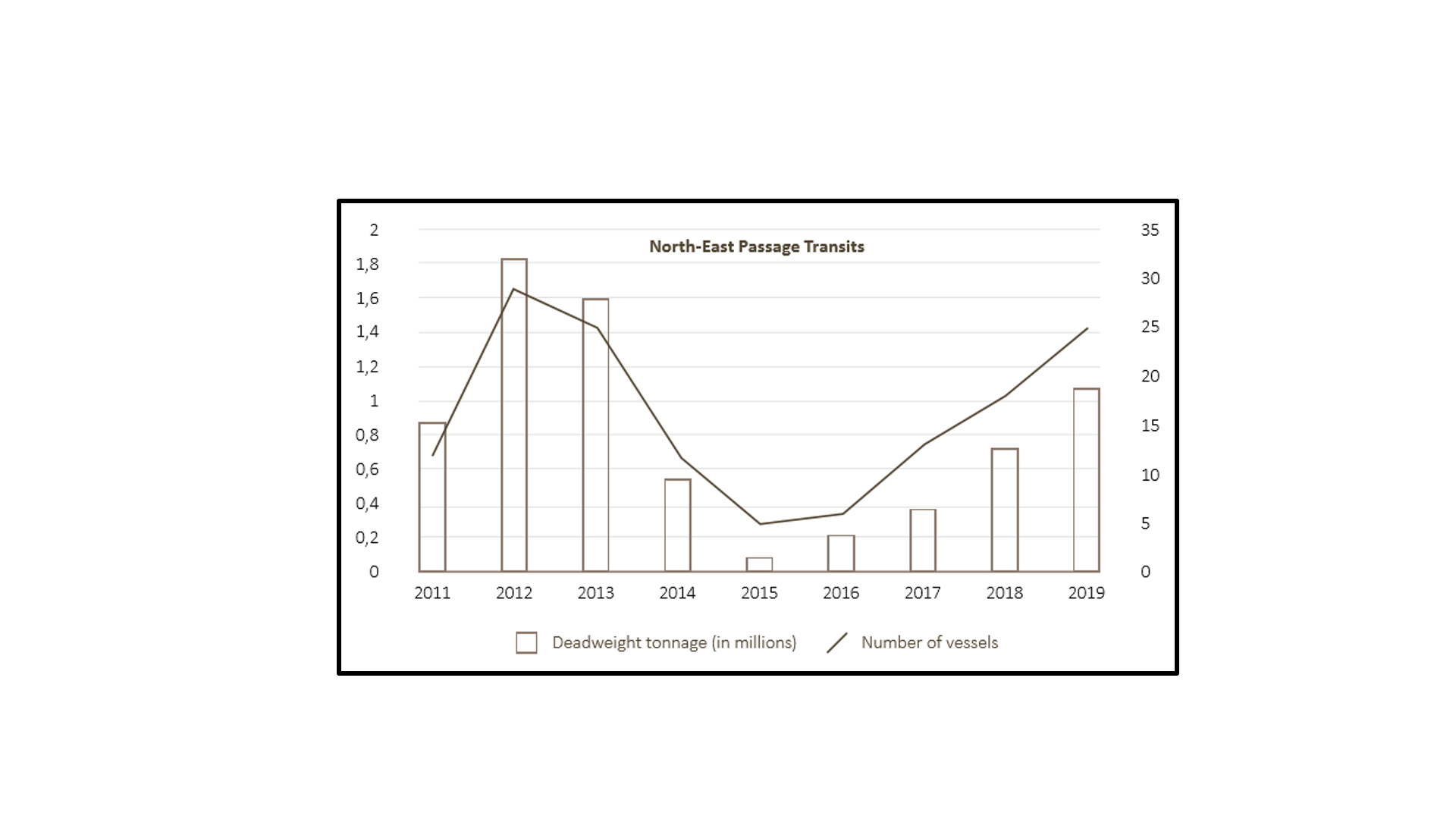 Grafik-1: Rus kıyılarına yakın kuzeyli rotalarda tespit edilen DWT/gemi sayısı